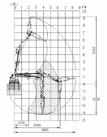 整机性能 工作范围图 大臂长度(mm) 5500 二臂长度(mm) 4000 最远工作距离(mm) 11010 最大垂直工作距离(mm) 8856 最大工作深度(mm) 7608 工作臂主梁结构形式 大尺寸箱式设计,使用高抗拉 强度碳钢Q355B焊接 整机重量(kg) 8T 液压锤(标配) 液压锤型号 HC100 液压锤工作压力 15-17MPa 液压锤工作流量 80-110L/min 冲击频次 350-700bpm 液压锤钎杆直径 φ100mm 适配液压锤型号 HC75/HC85/HC100/HC125 控制系统 控制方式 操作手柄+应急机械手动+无 线遥控+远程操作系统 主电机防护等级 IP55 控制器防护等级 IP67 液压站 电机功率 30kW/37kW/55kW -