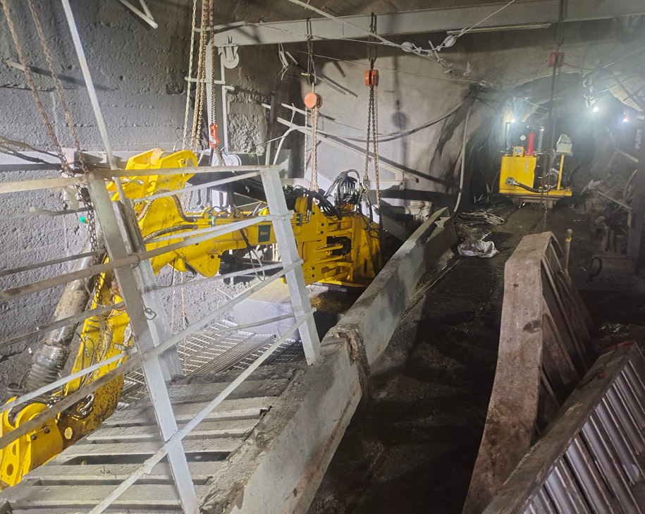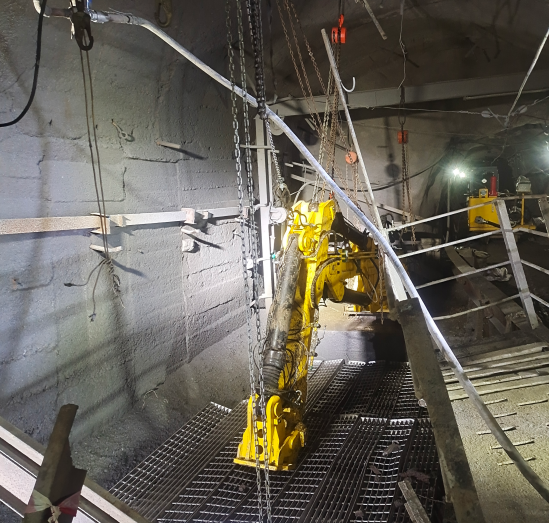 6045 最大垂直工作距离(mm) 4039 最大工作深度(mm) 4000 工作臂主梁结构形式 大尺寸箱式设计,高抗拉强度 碳钢Q345B方钢管碳钢焊接 整机重量(kg) 4300 液压锤(标配) 液压锤型号 HC100 液压锤工作压力 15-17MPa 液压锤工作流量 80-110L/min 冲击频次 350-700bpm 液压锤钎杆直径 φ100mm 适配液压锤型号 HC75/HC85/HC100/HC125 控制系统 控制方式 简易操作手柄+应急机械手 动+无线遥控+远程操作系统 主电机防护等级 IP55 控制器防护等级 IP67 液压站 电机功率 30kW/37kW/55kW -