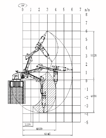 整机性能 工作范围图 大臂长度(mm) 2000 二臂长度(mm) 1500 最远工作距离(mm)