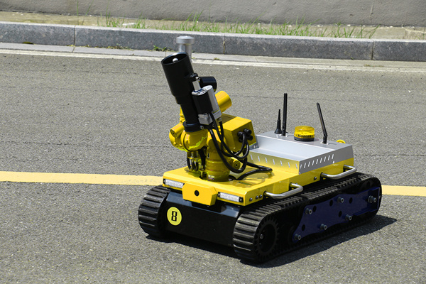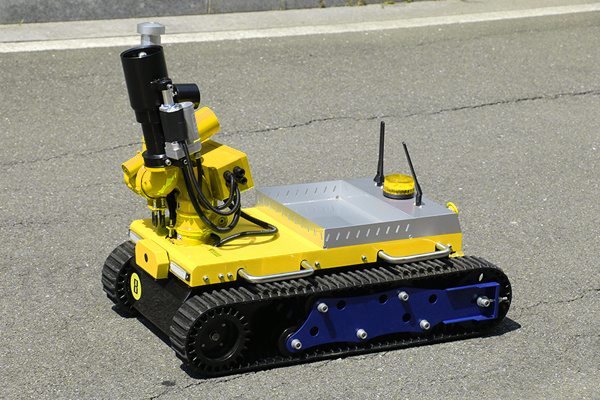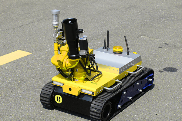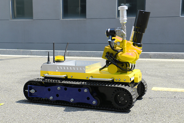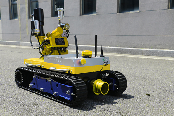 该机器人采用遥控器远程控制,运输方便,可将其放置在消防车的隔舱随车进入狭小场地,两位消防员即可迅速部署及快捷回收,适用于消防大队、消防站对建筑、工厂仓库、街边商铺、港口、化工园区等火灾现场及灾害隐患多发地进行灭火。